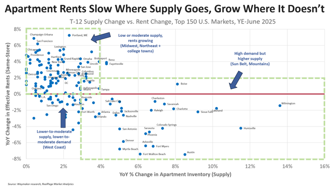 When vacancy rates are low, rent growth is high; when vacancy rates are high, rent growth is low (or negative). To lower housing costs for your community, build more housing.